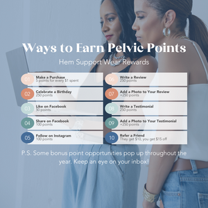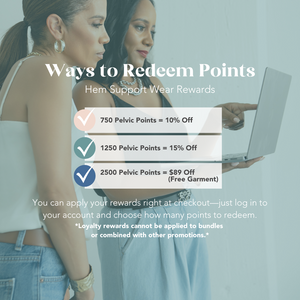 Welcome to Hem Support Wear Pelvic Points—our loyalty program designed to thank you for showing up for yourself, your health, and your pelvic floor. It’s free to join and easy to earn points that turn into rewards.